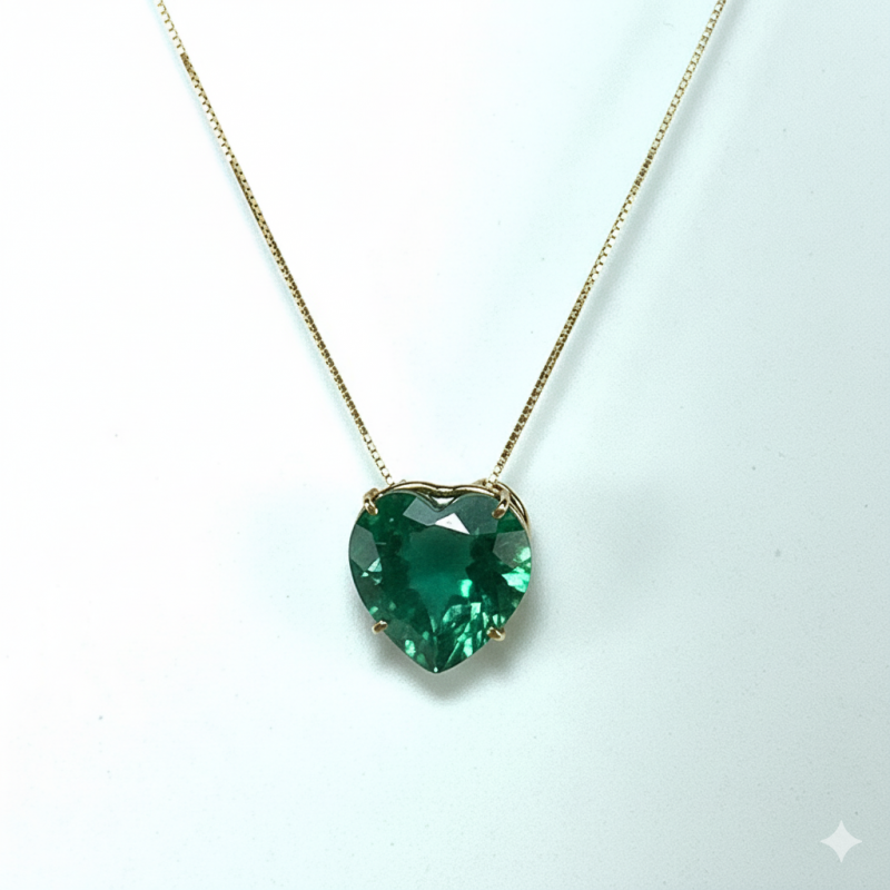 PINGENTE CORAÇÃO EM OURO 18K COM QUARTZO VERDE