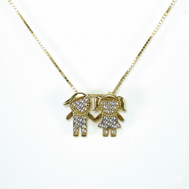 PINGENTE MENINO E MENINA EM OURO 18K COM ZIRCÔNIAS