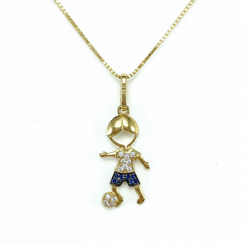 PINGENTE MENINO EM OURO 18K COM ZIRCÔNIAS - GREEN GOLD