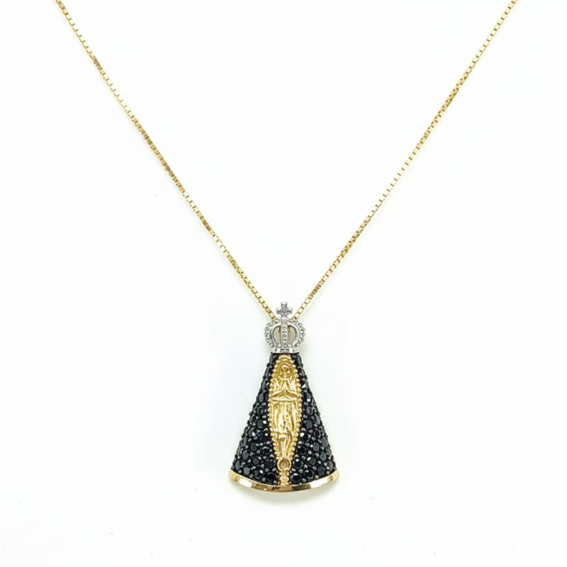 PINGENTE N. SRA. APARECIDA EM OURO 18K COM ZIRCÔNIAS - GREEN GOLD