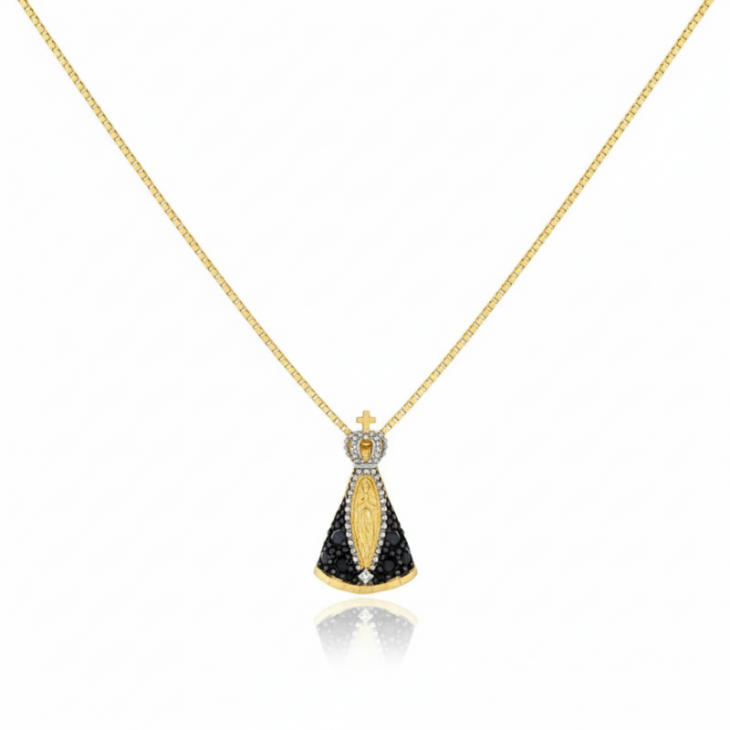 PINGENTE N. SRA. APARECIDA EM OURO 18K COM ZIRCÔNIAS - GREEN GOLD