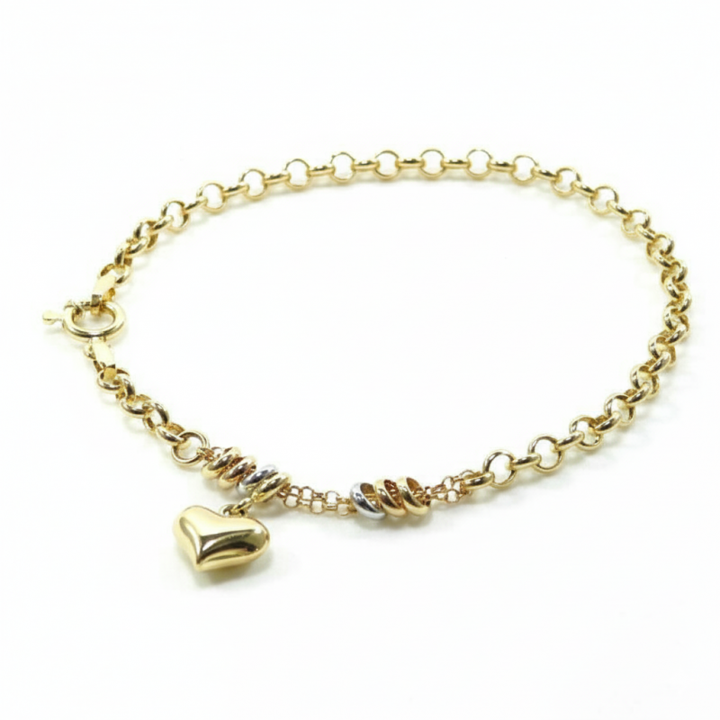 PULSEIRA DE ELO PORTUGUÊS COM PINGENTE DE CORAÇÃO EM OURO 18K - GREEN GOLD